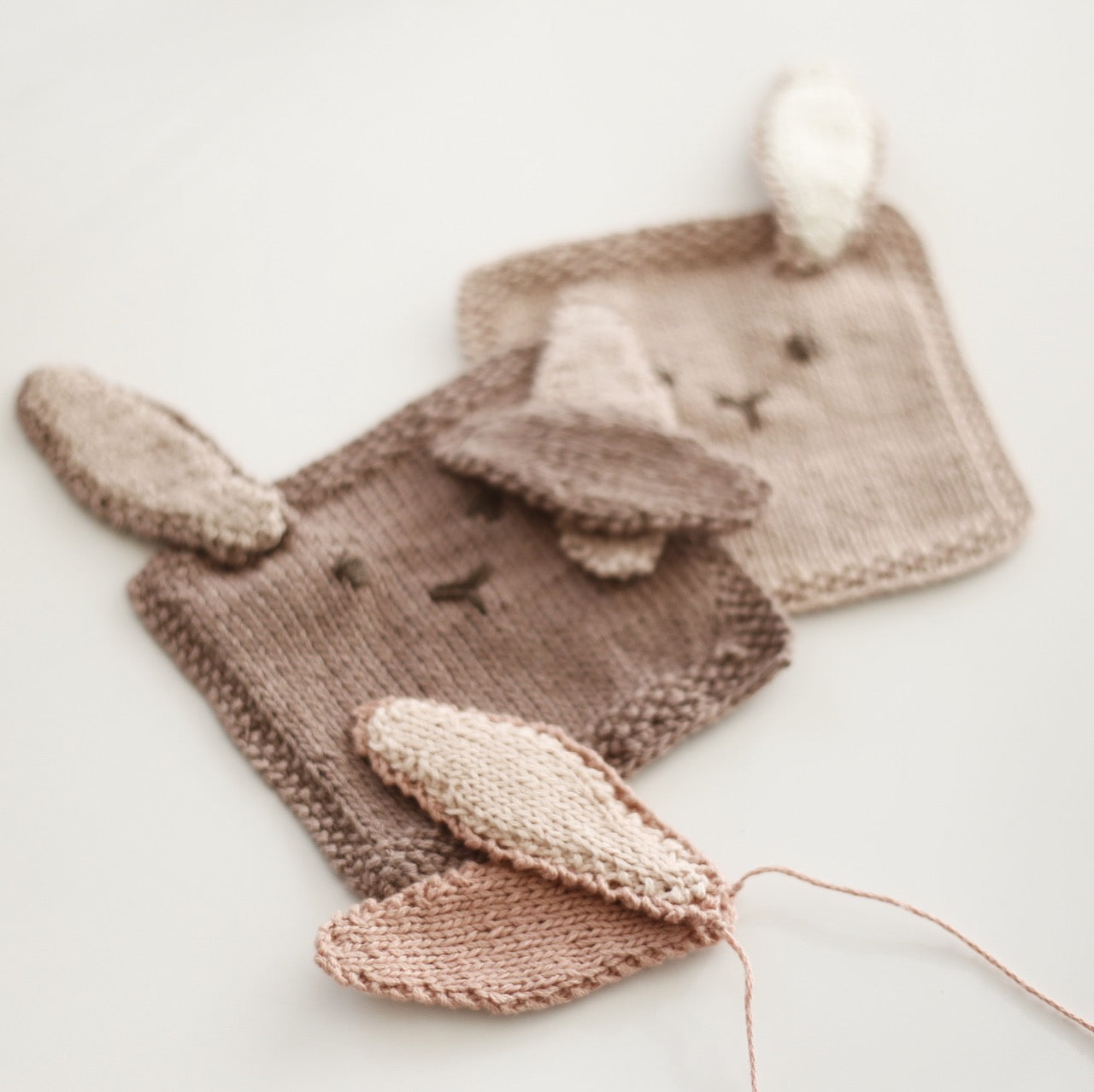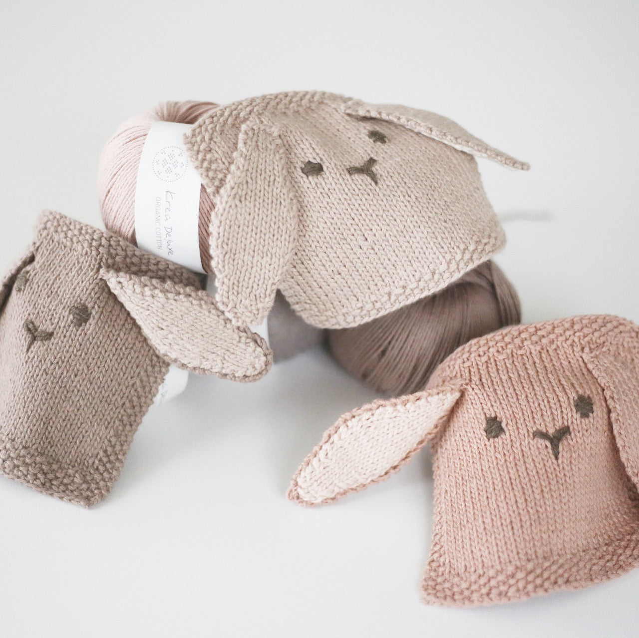 Disse 3 kaniner er strikket i farverne :